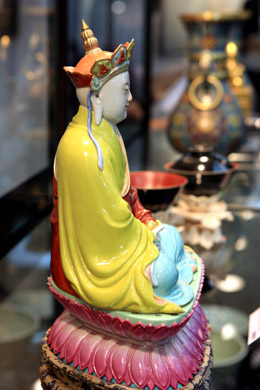 10月23日,華辰2008年秋季拍賣會新聞預展在北京舉行。這是在新聞預展上拍攝的拍品清乾隆“粉彩地藏菩薩”。