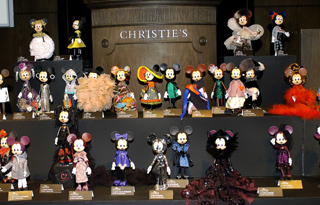 為慶祝迪斯尼動畫公司創作的“米老鼠”問世80周年,巴黎舉辦迪斯尼小玩偶義賣活動,由80名時裝設計師設計的80個形態、服飾迥異的“米老鼠”小玩偶被展示、拍賣,用于慈善事業。