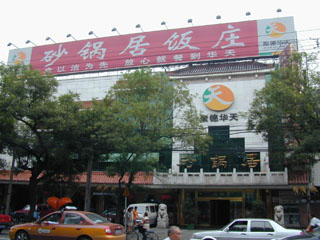 砂鍋居早年在京都名氣不大。真正出名是清光緒年間,一“旗員中堂”在家辦慶壽宴會,因接待一位“里扇兒”(老北京稱太監為“里扇兒的”)而揚名。 光緒初年某日,一位旗員中堂家慶壽辦事。而門生下屬爭相趨奉。慶壽之日,六部高官、封疆大吏、八旗都統、翰林學士多來祝賀,壽堂中明燭雙燃,張燈結彩,大柵中高朋滿座,盛友如云。有幾個太監也來拜壽,高居上座,指手畫腳,高談闊論。到了開席之際,茶師照例走到太監面前,請雙安(請一個安,再請一個安,稱為請雙安),說請里扇兒的老爺們要菜。原來太監有個惡習,凡到人家坐席,主人家準備多么豐盛多么精細的菜肴,太監也搖頭擺手,說不堪下咽,必須自己點菜,點名要某飯莊的某菜.其實所點者并不比主家備辦者強,但太監非如此不可,這叫“擺譜兒”。當時幾個太監七嘴八舌地要了幾家飯莊的菜。其中一個太監信口開河地說“我要砂鍋居的燒碟兒炸肷貼!敝魅思伊⒓凑埳板伨拥膹N師來備辦伺候。太監一句胡說八道使主人家花錢費事倒不要緊,這下子可把數十年難登大雅之堂的“下水棚子”捧上了天。當朝宰相家老爺子慶壽使用了砂鍋居的席!此話不脛而走,立即傳遍京華。自那以后,京旗官宦人家至于家資較裕的旗人家辦喜事、喪事、壽事、彌月等,無不以砂鍋居的燒燎白煮為主要席面,誰家搭棚辦事若不擺七十二個燒碟,就比什么都丟臉。砂鍋居自這次慶壽宴會后,名聲大震。民國年間砂鍋居的買賣更火。 不少商人見砂鍋居買賣不錯,于是有人便打上了仿字號經營的主意,也開白肉館參與競爭。砂鍋居為此特在門面兩邊戳起來兩塊招牌:一塊“名震京都三百載,味壓華北白肉香”,由著名書法家蔣之先生親自為砂鍋居揮毫題筆;另一塊為“只此一家,別無分號”。