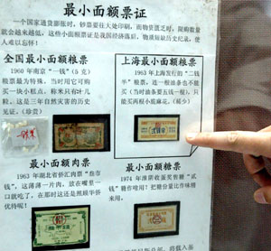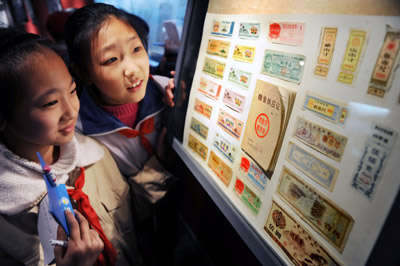 兩位女孩正在參觀糧票展覽。新華社記者:李紫恒 攝