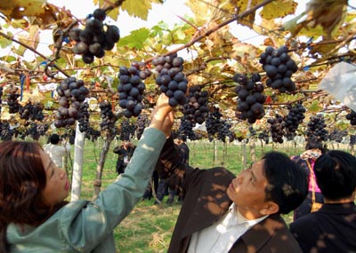 幾位游客在南寧吳圩明陽雙季葡萄種植采摘。(攝于12月18日)近年來,廣西通過推廣避雨、避寒、避曬“三避”技術以及蓋膜避雨技術,破解了葡萄種植在高溫多濕天氣下易生病的難題,實現葡萄種植一年兩熟,真正幫助農民增產增收。