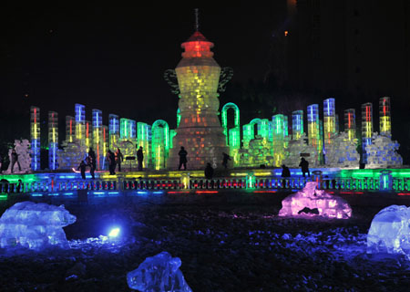 為迎接第24屆大冬會的召開,近日,哈爾濱有關部門精心制作的街路冰景先后與游人見面,富有特色的冰景展示著冰城獨特的城市景觀,向中外游客展現一個晶瑩剔透的冰雪世界。