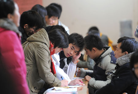 1月14日,寒假留校學生在應聘勤工助學崗位。當日,浙江工業大學舉行寒假勤工助學專場招聘會,10多家企業提供近200個短期工作崗位,幫助寒假留校學生減輕經濟壓力并獲得社會實踐機會,度過充實的寒假。