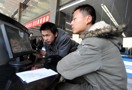 1月14日。兩位求職者通過電子顯示器查看招聘信息。 1月14日,長沙市就業援助周活動專場招聘會在長沙市人力資源服務中心舉行。這一場專門針對經認定的就業困難人員、“零就業家庭”成員、城鎮新登記失業人員的招聘會,吸引了80家用人單位為就業困難群體提供2000來個崗位。長沙市人力資源服務中心在現場設立“就業困難人員服務窗口”,為就業援助對象免費提供職業指導、素質測評、創業指導服務、勞動保障政策咨詢等“一站式”服務。