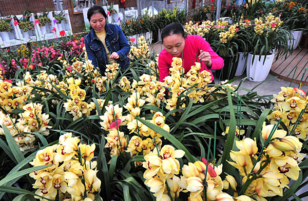 隨著新春佳節的臨近,來貴陽市白云區花卉超市購花的市民絡繹不絕。據了解,貴陽市白云區專門培植的5萬余盆大花蕙蘭、蝴蝶蘭等高檔名貴花卉將投放節日市場。
