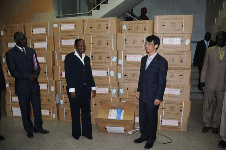 1月22日,中國駐塞內加爾大使盧沙野(右)向塞內加爾衛生部部長蒂亞姆(Safiatou Thiam)在達喀爾轉交中國贈予塞內加爾的抗瘧藥品。根據中塞兩國醫療合作協定,中國政府當天向塞內加爾政府贈送第二批價值200萬元人民幣的抗瘧藥品。2007年4月,中國已向塞內加爾贈送了同等價值的抗瘧藥品。