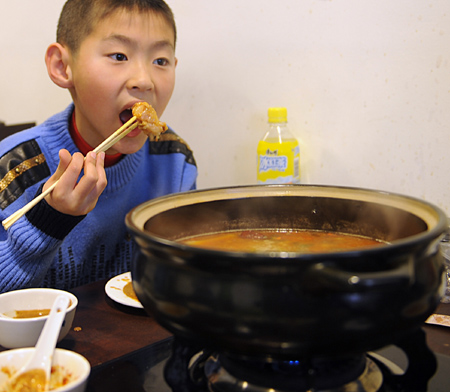 春節期間,“筋頭巴腦”店成為許多市民選擇的聚餐地點,喝一口濃香的醬湯,吃一塊爛熟的帶筋牛肉,觥籌交錯,其樂融融。相傳這是一種起源于中國明朝的食品,用火鍋的方式烹制而成,包含牛肉、土豆、油麥菜、中草藥等多種成分,于2008年冬天開始“進駐”長春。