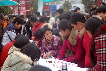 2月2日,安徽省黃山市黃山區舉辦返鄉農民工專場招聘會,40多家用人單位提供2000余個就業崗位,以滿足返鄉農民工在家門口務工的就業需求。新華社發(葛軍
