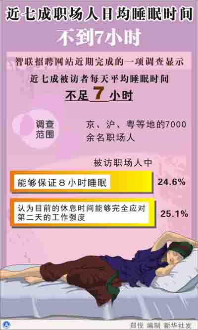 近七成職場人日均睡眠時間不到7小時