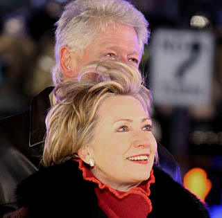 美國前總統克林頓(后)與夫人希拉里。新華社記者 侯俊