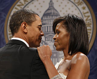 美國家族政治形態中父子檔、兄弟檔已經不新鮮了,希拉里·克林頓的出現讓人們看到夫妻雙雙征戰政壇正在成為現實。 希拉里對政治的興趣甚至比克林頓更為濃厚。1991年夏天,克林頓還沒有決定是否要參加1992年的總統競選,是希拉里幫他下了這個決心。她分析道:“你我正當壯年(克林頓時值45歲,希拉里43歲),現在是千載難逢的機會!笨肆诸D當時還是顯得不自信,希拉里卻一再鼓勵他:“你肯定會贏! 克林頓卸任總統后希拉里積極投身政壇。2000年11月7日她在紐約州參議員選舉中獲勝,當選美國國會參議員,成為美國史上第一位贏得公職的第一夫人。奧巴馬總統大選獲勝后,希拉里接受奧巴馬邀請出任美國國務卿。 奧巴馬夫婦入主白宮后,米歇爾·奧巴馬一直以溫柔賢淑的形象示人,公眾更是對她優雅的舉止、出眾的衣著品位津津樂道?墒莿e忘了,米歇爾有著毫不遜于希拉里的名校教育背景和職業女性生涯:先后就讀于美國頂級名校普林斯頓和哈佛法學院,受到最精英的教育。畢業后先是成為成功的律師,繼而成為律師事務所的合伙人。 在去年1月份成為丈夫的全職競選顧問前,除在6個機構的理事會擔任職務外,她還是芝加哥大學醫院負責外事的副院長,年薪高達21.2萬美元。 有克林頓夫婦垂范在前,人們不禁要問:現在的奧巴馬總統雖然號稱草根出身,可誰知道他會不會成為克林頓之后又一政治家族的奠基者呢?現在的米歇爾身著白色單肩禮服和奧巴馬在舞池中翩翩起舞,可誰又說得準有一天她會不會去問鼎美國國務卿甚至總統寶座,成為下一個希拉里呢? |