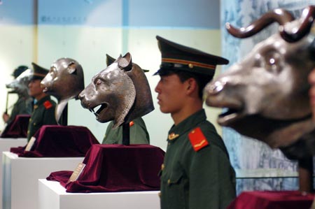 圓明園國寶——虎、牛、猴、豬四獸首。新華社發 | 圓明園,這個承載了中國人太多悲情和感傷的地方,由于來自園內的兩件文物將于近日在異國被拍賣,而再度成為國內輿論關注的焦點。 雖然外交部、國家文物局等官方機構已明確表態反對拍賣,以劉洋為首的民間律師團也已向拍賣方發出律師函和律師聲明,但拍賣方——法國佳士得公司依然堅持原有拍賣計劃。 圓明園兔首、鼠首會否出現在巴黎的拍賣現場?中國民間律師團追索流失文物能否達到效果?人們正拭目以待。
