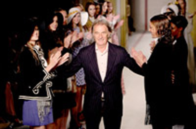 保羅·史密斯(中)在倫敦時裝周上與模特一同登臺致謝。新華社記者:謝秀棟 攝