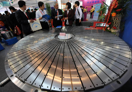 4月6日,第11屆中國國際機床展覽會在北京中國國際展覽中心舉行。本屆展會共有28個國家和地區的1200余家企業參展,為境內外參展企業與用戶間搭建充分有效的信息交流與貿易平臺。圖為參觀者在參觀電永磁吸盤。