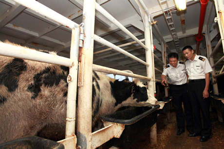 裝載來自澳大利亞的2875頭純種荷斯坦奶!癟ORRENS”輪,日前抵達連云港。該批奶牛是上海牛奶集團為上海世博會提供高質量奶源而專門從澳大利亞引進的優質品種,價值近590萬美元。 據了解,這是連云港口岸今年進口的第一批奶牛,也是自2002年來連云港第10批進口奶牛,累計進口達24626頭。連云港海關透露,連云港至此已成為江蘇省進口奶牛最多的港口。