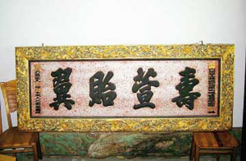 據收藏專家介紹,中國古典牌匾按外觀形式可分為橫幅和豎幅兩類,也有橫幅與豎幅同時使用的對聯形式。在我國明清時期民宅的門楣、壽梁和枋梁等處,常?梢砸姷揭猿烧Z典故、前輩留言為題材的牌匾,涵蓋了為人處世、經商秘訣等富有思想性、哲理性的文化內容。