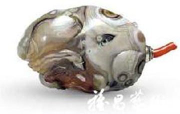 一般外形有特點的瑪瑙藏品收藏價值較高,旇У馁|地很硬,制作起來需要有幾十道工序,所以,造型越是繁復的外形,造價也就越高昂,自然,它的價值也就越高。如2007年,在紐約佳士得的拍賣會上,一件清代的瑪瑙臥鹿形鼻煙壺,外形雕刻栩栩如生,最終的成交價高達121.68萬元。像這種有特點的明清老瑪瑙制品是很有收藏價值的。目前看來,餐具器皿系列的瑪瑙工藝品是整個瑪瑙家族中升值最快的板塊,在2006年北京拍賣市場上,出現過一只金鯉魚跳龍門的天然瑪瑙盤創出了29萬元的高價。 |