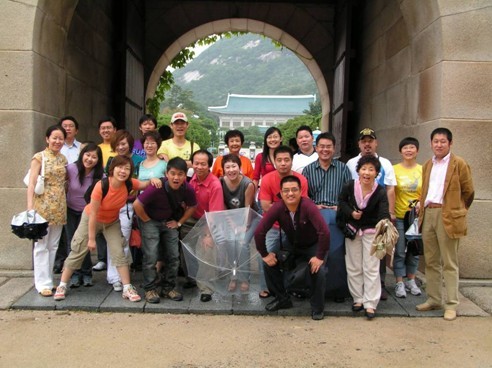 團員們在韓國總統府青瓦臺前合影留念