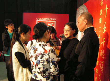 臺灣著名琉璃藝術家楊惠姍在佛文化藝術展與觀眾交流