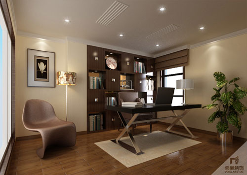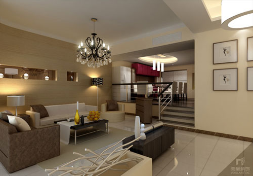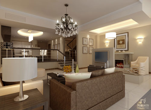 簡潔的米黃色和穩重的深咖色構成了別墅空間的主色調,大方而氣派,使整個空間給人一種簡約而不失雅致,內斂而華麗的感覺。每樣家具、家飾都恰如其分的融入空間當中。局部弧形的背景墻、不銹鋼壁爐、嵌入式書柜、閉合式淋浴間,均是各空間的點睛之筆。