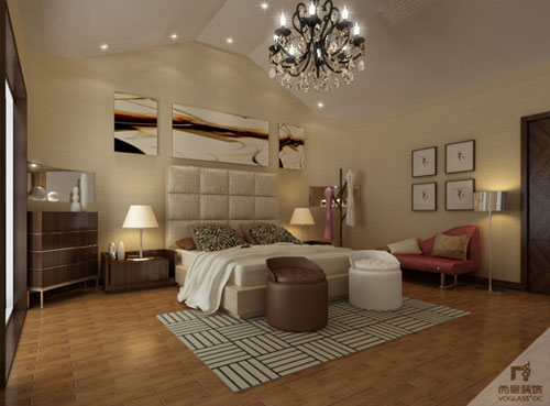 主臥室運用了一整面墻的米色壁紙,給人溫馨的感覺,這也正是臥室要達到最佳效果。