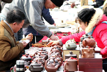 1月3日,古玩愛好者在蘇州市工人文化宮古玩交易市場“淘寶”。新年小長假期間,在當地舉辦的新年古玩交易市場熱鬧非凡,吸引了眾多古玩愛好者前來“淘寶”。 |