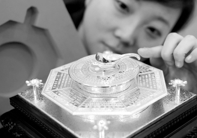 當日,一款名為“和合盤”的黃金工藝品在北京菜市口百貨商場正式上市銷售。該作品由古代司南、周易羅盤和八角盤等古代經典視覺符號構成,兼具收藏和投資價值。