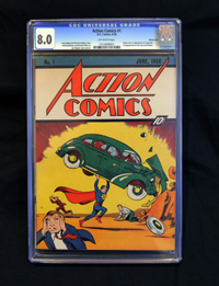 穿藍色緊身衣、披紅色斗篷的“超人”隨1938年第一期《動作漫畫》上市而“誕生”!秳幼髀嫛穭摽柮媸罆r售價10美分,現階段大約100本留存于世。