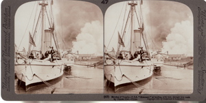 燃燒的塘沽:正在?康拿绹澳Z卡西”號,船身帶有被中國炮彈擊中的洞。銀鹽照片,1900年。 |