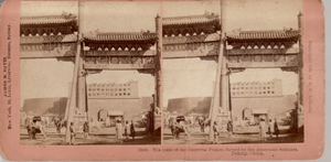 在義和團運動中被毀壞的北京前門樓,科爾波恩立體照片公司,1900年。 |