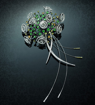 ▲設計是珠寶的靈魂,伴隨六福珠寶香港尖沙咀旗艦店的開幕,人們將有機會一睹六福珠寶國際獲獎作品的風采。曾榮獲第九屆香港珠寶設計比賽大獎的《花團錦簇》(如圖),是一枚由綠黃色漸變色系寶石制成的胸針,其設計靈感來自于花卉,突出了花的線條和動感,形態生動,栩栩如生。