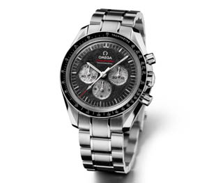 1975年7月17日,當美國宇航員陸軍中將托馬斯·斯塔福德和前蘇聯宇航員陸軍中將阿列克謝·列昂諾夫在連接各自太空飛船的對接艙口握手時,這兩位太空先驅與他們的宇航員同伴均佩戴有歐米茄超霸專業計時表。為紀念這一歷史性握手35周年,歐米茄特別推出超霸專業月球表阿波羅—聯盟號“35周年紀念版”計時表,限量1975枚。該款腕表表盤由進入地球大氣層、高速撞擊陸地表面后殘存的隕石制作而成,隕石表盤的黑色是表面氧化作用的結果,銀色秒針和計時器小表盤均展現出隕石的自然色澤。
