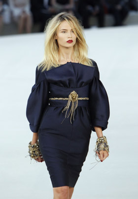 素有“怪才”之稱的法國著名時裝設計師卡爾·拉格費爾德在巴黎大皇宮為時尚界帶來了一個“不一樣的香奈兒”:沒有一條長裙、沒有一條黑裙。拉格費爾德解釋說,各種活動的紅毯上人們已看到太多長裙,而那“將不再屬于我們的時代”。短款設計更能凸顯女性的曲線美,同時為服裝增加了更多的“靈活性”,讓女性更加活動自如。 色彩豐富、造型多變、刺繡精致——這是香奈兒時裝秀給觀眾的第一印象。本次秀場中放置了一座15米高的獅子雕塑,這是出于拉格費爾德對獅子座的CocoChanel小姐的贊頌。 香奈兒2010秋冬高級定制秀展現了俄羅斯羅曼諾夫皇朝時期的壯麗與奢華,用亮片和繁復裝飾點綴及膝裙子,顯得新意十足。拉格費爾德選用了深紅色和大地色系為主色調,突出了溫暖的季節感。