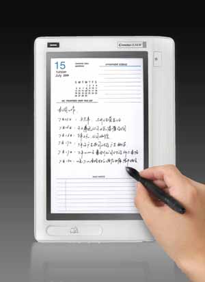 ▲與天氣同樣火熱的平板電腦市場近日又迎來了一位有力的競爭者——針對中國商政精英的移動辦公需求而研發的E人E本T2新品。T2以傳統記事本和書籍為設計靈感,典雅而精致,硬件側邊的斜坡式設計順應了人體手寫輸入過程中的習慣。T2機身厚1.1厘米,重量僅440克。讓人驚喜的是,T2擁有一秒開關機、一鍵返回主界面等人性化設置,下方設有返回鍵和菜單鍵,加上右側的書頁式設計,不僅適合閱讀,且手寫平滑,上網體驗也更加流暢。