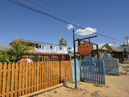 額爾古納市位于中國版圖的東北部,內蒙古自治區的最北端,西北隔額爾古納河與俄羅斯赤塔州相望。從海拉爾出發,向北行駛4個小時左右,穿過陳巴爾虎旗草原和大興安嶺白樺林之后,便是恩和村了!岸骱汀钡拿烧Z意為“和平”。據當地鄉長說,在19世紀末到20世紀初的三四十年間,中國以山東、河北為主的“闖關東”移民流與沙俄在西伯利亞和遠東地區奉行“邊區俄羅斯化”的移民流在額爾古納河畔相遇,兩個不同種族的流民不斷往來,繼而聯姻、繁衍、定居,形成了中國最大的俄羅斯族聚集群。 1989年,“華俄后裔”被確定為“俄羅斯族”,也是我國低于10萬人口的少數民族之一。室韋俄羅斯族民族鄉總人口4000余人,其中俄羅斯族人口占據近半數,保留著較為完好的俄羅斯文化和生活習俗。當地的俄羅斯族人多信仰東正教,按俄羅斯族時令過巴斯克節。 進入村莊,單門獨院的俄式“木刻楞”比比皆是。恩和的俄羅斯族民居深受北歐西伯利亞農莊建筑風格影響,都是一棟棟典型的俄式木砌房子,叫做“木刻欏”。用原木交錯疊建,原木之間墊有青苔或泥土,屋頂由鐵皮覆蓋,門窗邊框用彩色漆繪。站在村里,環顧四周,家家窗臺上都有鮮花,每戶都有用木柵欄圍成的大院子,院里有花有草,還有粗繩捆制木頭做的秋千在風中微微搖蕩。抬眼望去,不遠處的村中心有一個教堂,正是標準的俄羅斯東正教教堂的建筑格局。