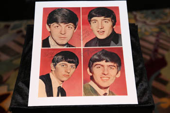 日前在澳門舉辦的好萊塢“傳奇”巨星珍品展暨拍賣會展示的披頭士簽名宣傳像!⌒氯A社發(張金加/攝) |