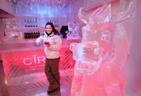 一名女子在澳大利亞墨爾本的首家冰吧里享用雞尾酒。這座酒吧里的座椅、吧臺等設施由30多噸的冰雕刻而成,連酒杯也由冰做成。顧客花費22.5美元便可以在零下12攝氏度的氣溫里待上半小時,坐在鋪有袋鼠皮的凳子上享用一杯免費的伏特加或雞尾酒。