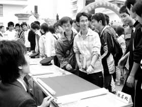 11月14日,前來廣州海珠區人武部參加體檢的應征大學生絡繹不絕。海珠區把今年冬季征兵工作重點轉向高等院校,并在轄區內中山大學、廣州美術學院、廣州商學院等7所大學設立征兵點,征集近百名在校大學生。