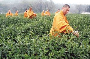 3月16日,杭州中天竺法凈禪寺僧人正在采摘今年頭茬“禪茶”。當日,2007禪茶開茶節在該寺舉行。據了解,著名的杭州龍井茶起源于杭州寺廟、成名于杭州寺廟。據歷史記載,西湖龍井就是當年在寺廟僧人建議下始作為貢茶的。