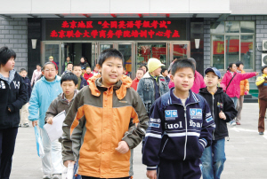 3月24日至25日,是2007年全國英語等級考試上半年考試的日子。24日早上7點半,記者來到北京聯合大學商務學院培訓中心考點。雖然9點才開考,但已有考生陸續到來,記者看到考生大多是10歲左右的孩子,在家長的陪同下來參加考試,考場前的校園的空地被家長們圍得水泄不通。檢驗考試證件的監考老師告訴記者,該考點小學生考生占了80%以上,還有一些中學生。 上小學四年級的劉超告訴記者,他參加的是二級考試。他從小學一年級起就開始學習英語了,參加公英考試是父母的意思。他抱怨地說:“整天都在學習,根本沒有時間玩”。 小學三年級的朱雅麗也是參加二級考試的,這已是她第二次參加二級考試了。她對記者說,除了平常的上學,她要額外學習公共英語和奧數,還要每天彈鋼琴。她說考試內容有些看不懂,只好用輔導班學到的一些技巧答題。她也不想學,但媽媽說,考重點中學,沒有英語等級證,連參加考試的資格也沒有,只好硬著頭皮學了。 10點半左右,臨近考試結束,記者又趕到北京市財經學?键c,同樣看到考生中大多為小學生。記者電話采訪了北京市教育考試指導中心,考試科的王老師告訴記者,這次北京報名參加3月份考試的有4.8萬人左右,其中小學生考生至少在一半以上。她說,近來小學生考生呈現快速增長的勢頭,在所有考生中所占的比例越來越大,報考的級別也越來越高。