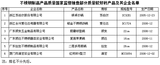 為維護消費者的合法權益,促進不銹鋼制品行業健康發展,國家質檢總局組織對不銹鋼制品產品質量進行了國家監督抽查,共抽查了廣東、福建、浙江、上海等4個省、直轄市30家企業生產的30種不銹鋼制品,其中不銹鋼器皿28種,不銹鋼餐具2種,產品抽樣合格率為83.3%。