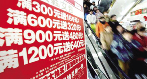 2004年北京華聯安貞商廈推出了“百貨累計滿200返300”活動。在搞促銷活動的七天里,安貞華聯的單日銷售額和客流量竟飆升至正常營業時的五六倍,分別達到1000萬元左右和10萬至15萬人次。據安貞華聯商廈有關負責人介紹說,他們主要是針對北京市周邊的石家莊和天津兩大地區推廣此活動的,商場在策劃時一方面考慮要穩定現有市場占有率,一方面決定抓住長假期間大量外埠人口進京休閑、度假的商機,搶占更為廣闊的假期消費市場。