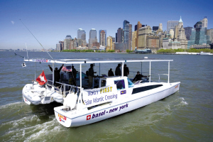 5月8日,雙體全太陽能動力船“太陽21”號正駛近美國紐約曼哈頓。該船于2006年10月16日從瑞士巴塞爾的碼頭起航,8日到達紐約,航程共計1.3萬公里,這是世界上首次依靠太陽能完成橫穿大西洋壯舉。該船12噸重,14米長,船頂是一塊60平方米的太陽能電池板,為船體的兩臺發動機提供能源。據報道,“太陽21”號在旅途中共“生產”了2000千瓦時的太陽能。