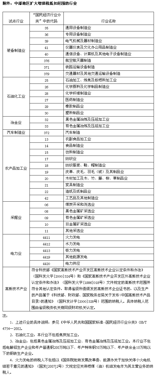 中部地區擴大增值稅抵扣范圍暫行辦法