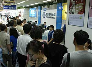 2007年5月23日,北京市民在中國移動業務大廳排隊辦理“被叫全免計劃”業務。本報記者 李芳宇 攝