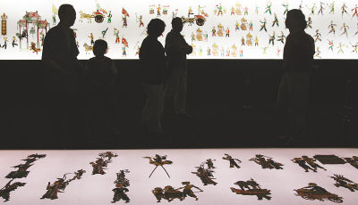“影戲華彩——中國美術館館藏皮影珍品展”上,觀眾穿梭在不同風格的皮影作品中,體會著光影色彩的魅力。這是中國美術館首次集中展出館藏1.7萬余件皮影中的一批罕見珍品。展覽分兩個階段:第一階段至6月13日,展出20件(套)皮影;第二階段從7月10日至8月10日,在增補一批作品后繼續展出。
