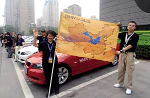 昨天(12日),2007“BMW中國文化之旅”車隊在京啟動,由15輛寶馬汽車組成的車隊從首都博物館出發,將途經山西、陜西、甘肅,最后抵達敦煌。