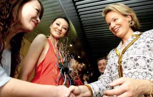 當天,瑪蒂爾的親臨北京服裝學院,會見了2007安特衛普HRD大賽(一項國際鉆石設計大賽)中國入圍者并參觀其入圍作品。據了解,中國8件入圍作品中有6件出自北服在校學生之手。