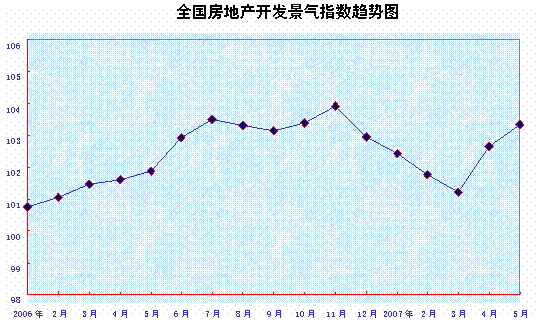 5月份,“國房景氣指數”為103.32,比4月份上升0.67點,同比上升1.45點。