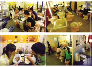 | 深圳食客在廁所餐廳吃得津津有味 | 隨著物質生活的條件越來越好,人們對“吃”的要求,已經不僅僅停留在食物本身。用餐,已經從一種物質享受提升到精神享受。南京一些餐館開始從“吃環境”、“吃個性”、“吃特色”中尋覓商機。這些餐廳還真有點另類的“文化味道”。